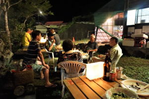 気になるYUTUからの復興はまだまだ道半ばと感じました。表向きはほとんど復旧しているように見えるのですが、 未だにテント暮らしの島民は千人ほどいるとのこと。特に、学校は復旧が遅れており、校庭に大型テントをたくさん張って、 教室の代用にしています。また、我々KFCがYUTUの直撃を受けた時に宿泊していたアクエリアスはクローズのままです。 さらに、YUTUから1年半も経つのに公務員の給料削減が未だに続いていると云います。加えて、公務員も含め、 島民のほとんどがYUTUで自宅を破壊されており、 その新築や改築に要した資金のローン返済が、今後の彼らの生活に暗い影を落としています。