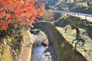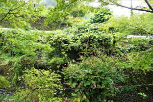 さらに、対岸の道路のガードレールに絡みついたクズや法面の雑草や灌木を取り除いてみると、下から美しい石垣が現れました。 個人的には、石垣は古人の血と汗と涙の結晶に思えて、いつも尊敬の念を抱いてしまいます。それに芸術的でもあります。