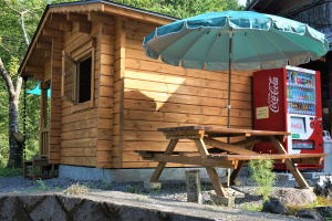 それならばと、保健所対策として、7月21日に道路に面したスペースにコカ・コーラの自販機を設置しました。コーラはもちろんですが、 アクエリアスや麦茶等々、約20種類のドリンクが購入できます。また、傍にピクニックテーブルを常時設置しておきますので、「成木の家」が休みの日でも気兼ねなくご利用頂けます。また、トイレに関して、「成木の家」が休みの時は近くの上成木バス停の公衆トイレを利用でき、不便はありません。