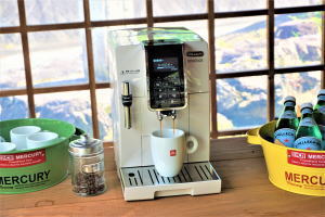 2020年秋、次にデロンギ製のコーヒーマシンを購入しました。それまではカップオンのドリップバックコーヒーで訪れる人のおもてなしをしていました。しかし、どこのコンビニでも急激にコーヒーマシンが普及していることを思うと、「成木の家」にもその必要性を感じていました。コーヒーマシンにはそれ自体に存在感があり、ボタンひとつで、目の前でコーヒー豆を挽いて、淹れてくれます。さらに、その過程を音と香りで楽しめるのがコーヒー好きには嬉しい。お手軽なドリップバックコーヒーより本物感があり、通好みのエスプレッソが選択できるのもいい。