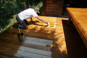 冬季は寒いので休んで、翌2021年6月初めから「成木の家」裏手の川に面したウッドデッキと大型テーブルの補修を行いました。11年間の長きに亘って雨ざらしの状態であったため、当然それなりに傷んでいます。この時季は梅雨との競争です。何とか梅雨の始まる前に防腐剤まで塗り終えたいと考えていました。