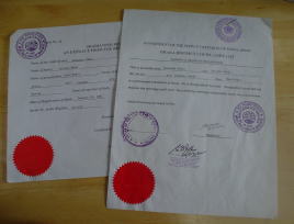 早朝、ジャマールがFさんの泊まっているロタ・ホテルに大型封筒を持って来て、 これを日本にいるアブに届けて欲しいと頼む。 19日に、大西からアブの成田逃亡事件を聞いていたFさんは、朝食後、その大型封筒を持って大西の所にやってきた。 その場で、大西がその中身を調べたところ、驚いたことに、何と、 本国バングラデシュ政府2002年3月20日発行のアブ本人の出生証明書と裁判所が発行した独身証明書が入っていたのである。 これらには、本物であることを示す赤いノータリー・スタンプ(公印、或いは、公正証書であることを示す)が押印されていた。 これらはこの場で大西が預かることにした。