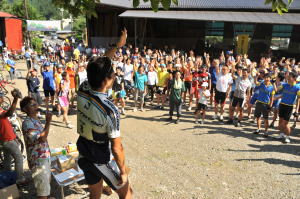 第一レースが終わり、今年も宮塚選手を先頭にゆっくり一列になって下山。でも、本番はこれからです。中には、第一 レース終了後に自分でギブアップを申出た選手も・・・・。