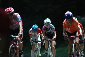 コースは15,6パーセントのきつい傾斜も何か所かあり、かなりパワーの必要なレースでした。私の今回の目標は、 7月の奥多摩ステージで、1,2位の選手とは、力の差を痛感していたので、その差をできるだけ詰めること。前回レース 後3週間は、こつこつと練習してきました。少しその疲れがあり、動きに切れはなかったけれど、練習のつもりで思いっき り走ることにしました。