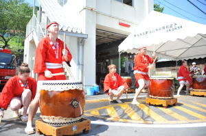 また、福生にある米軍横田基地の外国人による和太鼓チーム「横田サムライ太鼓」のメンバーが応援に駆けつけてくれ、 ダイナミックな太鼓を披露してくれました。この日のために3ヶ月前から毎日練習を積んだそうで、青空にまっ赤なハッピ が映えていました。このチーム、何と女性メンバーの方が多いそうです。