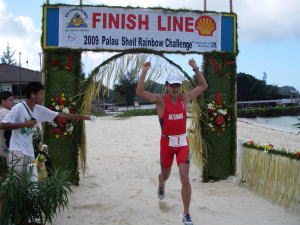 パラオは、フィリピン近くの共和国。赤道に近いので、物凄い暑さである。しかしながら、今年は異常気象なのか、昨年よりも涼しく感じられた。 また、いつもなら存在しない、ジェリーフィッシュ(くらげ)が海にいた為、スイムは中止になり、デュアスロンになった。