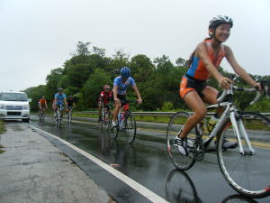 雨の中、安全を期すためにスタート後30分間ほどは松丸真幸選手が集団をコントロールし、皆その後を走るということにした。ツール・ド・フランスでもそうだが、 海外の自転車レースではその時の状況に応じて、このような選手同士の紳士協定が結ばれることが多々ある。欧州で自転車レースが紳士のスポーツと言われる由縁だ。