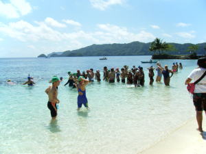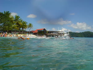 午前中に開催したトライアスロンの選手たちもスイマーに混じってスイム を楽しんでもらうことにした。せっかく遥々パラオまで来て、全然泳がないで帰ってもらうのは申し訳ない。