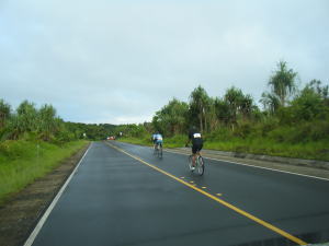 予定通の06:30amちょっと遅れで、スタート地点であるシェルガソリン・スタンドをスタートした。熱帯パラオにありながら、この日は寒かったので、当初予定 のタイム・トライアル形式ではなく、急きょ一斉スタート方式に変更した。