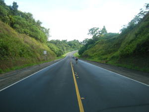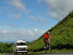 バイクは、いきなり急な登り坂が待ち構えている。ダンシングでグイグイ進む。そして、コロールの市街地を抜けて、バベルダオブ島とコロールを 結ぶ、KBブリッジを渡る。この橋は勾配がきつく大変だ。そして、舞台は、バベルダオブ島へ。