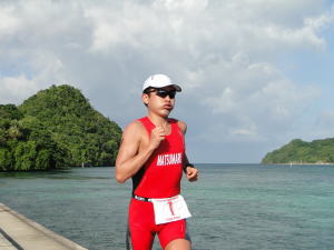 ランは、日影がないので、集中力の必要なコースだ。初めに、バイク同様に、きつい坂を登る。いつもより涼しいといっても、気温は30度以上あるから やっぱり暑い!過去に、いろいろな気温の高いレースに参加したことがあるが、やはりここが一番だろう!