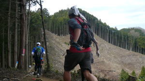 そして関門通過後に「後はゆっくり行けばいい」と、もう一度自分を落ち着かせる。 見晴らし広場では、KFCの大西さんの奥様がいらしたので、ご挨拶させて頂く。 なちゃぎり林道までの上り(ほぼ登山)はマイペースを守る。 なちゃぎり林道では一部歩いた。試走ではここを歩いた事はなかった。