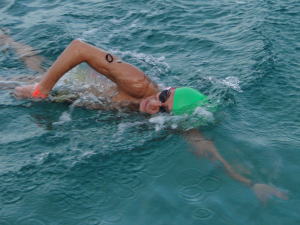 今年はオーシャンスイムで猛烈なスコールを体験した。スタートしてまもなく泳いでいる選手を強烈なスコールが襲ったのだ。海の中を泳いでいるので、 上から雨が降って来ても、どうってことはないのだが・・。しかし、それが熱帯の猛烈なスコールとなると、スイマーたちを不思議な感覚にさせる。