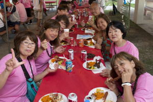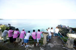 パーティを終えて、引き上げようとしていると、ローカルのチャモロ人スタッフ(男性)が近づいて来て 「参加賞のTシャツ、来年からピンクは止めて」と懇願された。 チャモロの世界ではピンクはオカマをアッピールする色であり、大会後に着ると間違いが起こると言う。
