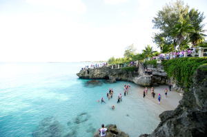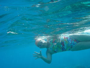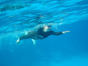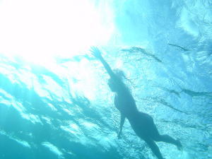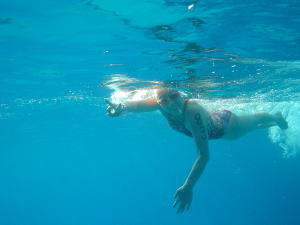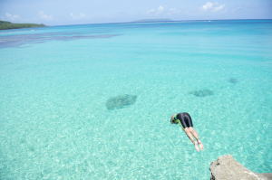 それにしてもテニアンの海は本当に美しい。仮のブイをつけ終わり、コースを泳ぐと10m下のアンカーまでしっかり見える程、透明度は高い。 テニアンの海の透明度は30mとも言われている。熱帯魚もたくさんいる。時にはカメを見ることもできる。