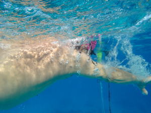 スイムはピーカンの空と青い海で、波もうねりもなく、見ている方が羨ましくなる程の海だった。