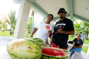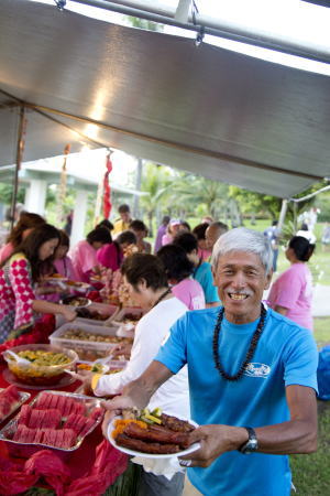 夕方のアワード・パーティーでは、おいしいローカルバーベキューを中心に、レッドライス、きゅうりで作ったおいしいピクルス (チャモロのバーベキューには欠かせない一品)、その他、数々のアイランド・スタイルの料理が並んだ。 レストランでは味わうことができない選手だけの特権だ。そして、ビール。