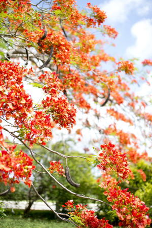 6月2日(土)、いよいよレース当日だ。この時季がテニアンのベストシーズンだ。島中のあちらこちらに火炎樹が咲き乱れ、海と空の青さ、 ジャングルの緑に真っ赤な火炎樹がよく映える。海のコンディションも良好、文句のないコンディションだ。