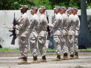 現在、テニアン島には、USマリーン(米海兵隊)が駐留している。市長始め、島民に聞くと、沖縄、岩国基地そしてグアムからやって来たマリーンで、 2〜3ヶ月はテニアンに駐留し、本格的な軍事演習を行うらしい。