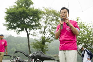 午前7時頃から参加者が集まり始めました。中には、この天気で出走を躊躇される参加者もいました。しかし、ほとんどの参加者は 受付を済まされました。自転車乗りは肉体だけでなく、精神的にも逞しいものです。