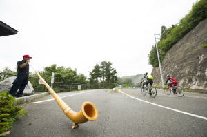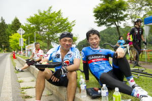 正午前に第1ステージを終えた参加者が続々と戻ってきました。そして、弁当を食べた後、約2割の選手が第2ステージのキャンセルを 申し出ました。おそらく第1ステージ最終の坂、約40q地点から延々と続く10qの上り坂で脚を使い果たしたのでしょう。