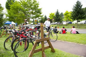 大会前日は晴天で、「シェーンガルデンおみ」は高原の爽やかな空気に包まれていました。この天候なら明日は最高の自転車日和になると 考えていました。