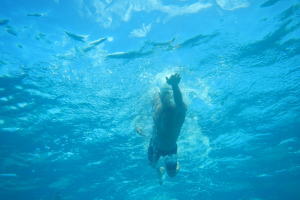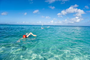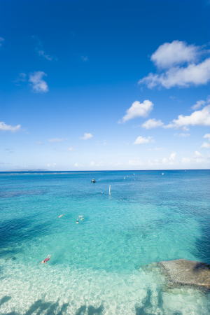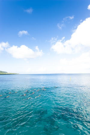 しかし、テニアンの海はロタほどのダイナミックさはありません。ビーチから手軽にエントリーでき、単独でも、安全に沖へ泳いで いくことができます。