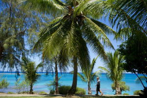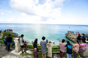 水深はほとんどが10m前後で、最も深い所で20m位です。沖に大きなサンゴ礁があるため、海面は穏やかです。 そのため、地元の子供たちも四六時中、海(タガビーチ)で遊んでいます。万人向けの海と云う意味では、おそらく、 ミクロネシアで最も美しい海と言えます。