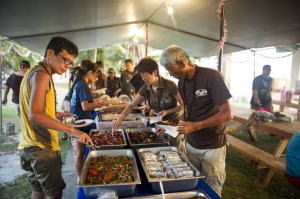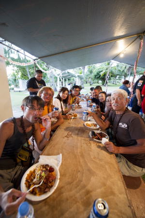 夕方、夕陽の美しいタガビーチで催されたアワード・パーティでは、 島民たちがそれぞれ自宅で作った美味しいローカル料理を 持ち寄ってくれました。