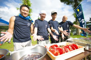 サイクリング中の楽しみの一つであるエイドに関しては、全てのエイドで、昨年よりもさらに工夫をこらし、 選手の皆さんに喜んで 頂けるよう随所に気持ちが込められていました。