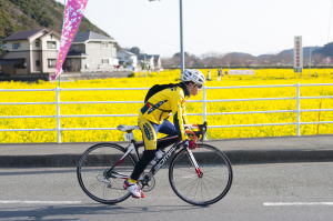 あの有名な天城峠を超え、ペリーの黒船到来で有名な下田へはいります。その後、南伊豆町に入り、エイドの「メロンランド」に 立ち寄り、美味しい蜂蜜でエネルギー補給をします。その後は一面の菜の花畑、桜並木を横目に臨海学園にゴールです。早い人は 6時間ほどでゴールされました。平均時速20qで走ったことになります。