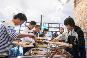 フィニシュ地点は南伊豆臨海学園の中庭です。ここは高台にあり、眼下には子浦湾の全景が見下ろせ、最高の眺望です。そして、 ゴールされた選手の皆さんへ伊勢海老の味噌汁が振舞われました。因みに、伊勢海老は南伊豆町の特産物なのです。そして、 参加者の皆さんは満足気に帰って行かれました。