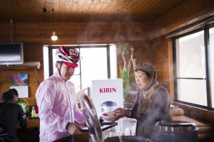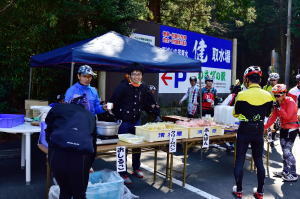 途中のエイドステーションには、県道59号線上のヒルクライムルート中間にある「わさびの駅」と 云う施設にお願いしました。