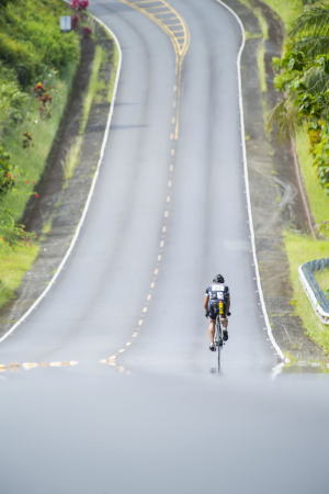 我々が東京や南伊豆で開催しているグランフォンドのような急こう配の上り坂はありませんが、 一つの坂が1km〜3kmと長いのが特徴です。 でも、自転車の場合、上りで苦しんだ後には必ず楽できる下りが 待っています。だから、頑張れます。