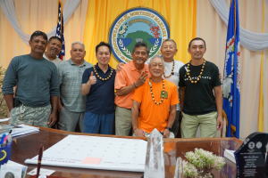 27日(火)、昼過ぎにグアムから8人乗りチャーター機でロタへ到着し、直ちに空港からロタ市役所へ直行した。前もってアタリック市長に事情を伝え、デビットたちコーヒー関係者を市長室に集めておいてもらった。中平さんとアスロンコーヒー焙煎所の阿部さんをアタリック市長に紹介するためと、「ロタコーヒープロジェクト」クラウドファンディングの 支援金3万ドルを市長に手渡すためだ。我々が遅れて到着したにも拘らず市長を始めそうそうたる面々が市長室で待ってくれていた。長年の信頼関係を感じた。