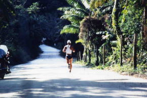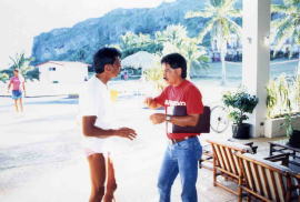 言葉や文化の違う土地で、ゼロから何か(トライアスロン)を作り上げていくことは難しい。 ビデオや雑誌を持って行って、見せたり、あの手この手でトライアスロンという競技を理解させようとした。 そして、将来のことを考えて、どうしてもやっておきたかったのは、地元の人の参加を実現させることだった。 なぜなら、メイヤーを初めとする島のリーダークラスだけでなく、平民というか、 一般の島民たちにも受け入れてもらわなければ、このイベントが島に根付くことはないと感じていたからである。 それには、将来性のある若者を参加させるのが一番効果的であると考えた。